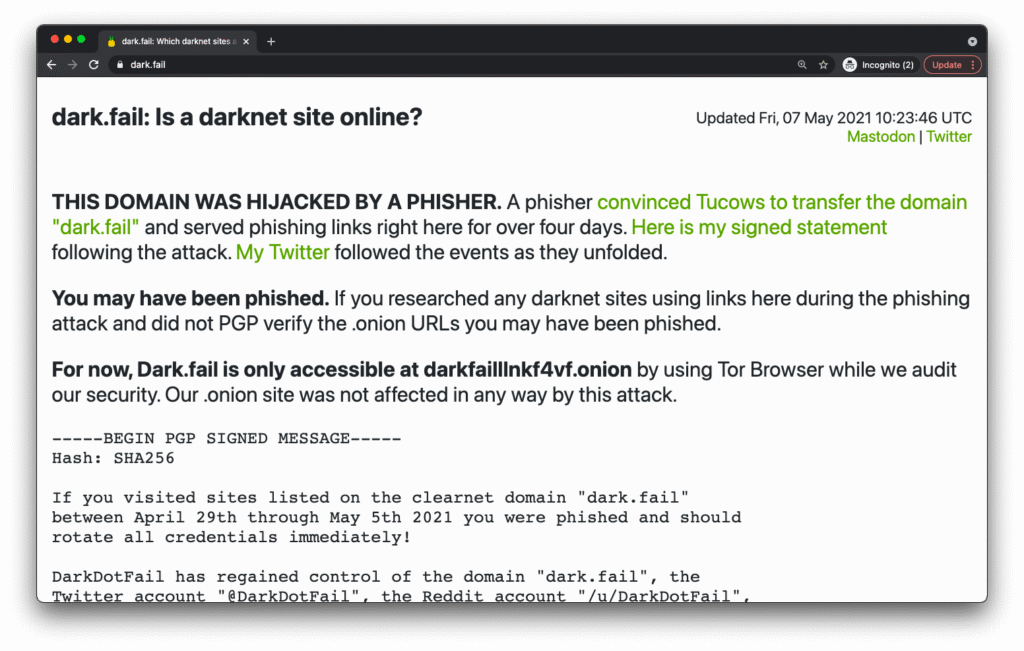 Challenges Faced by Dark.fail and the Dark Web Ecosystem